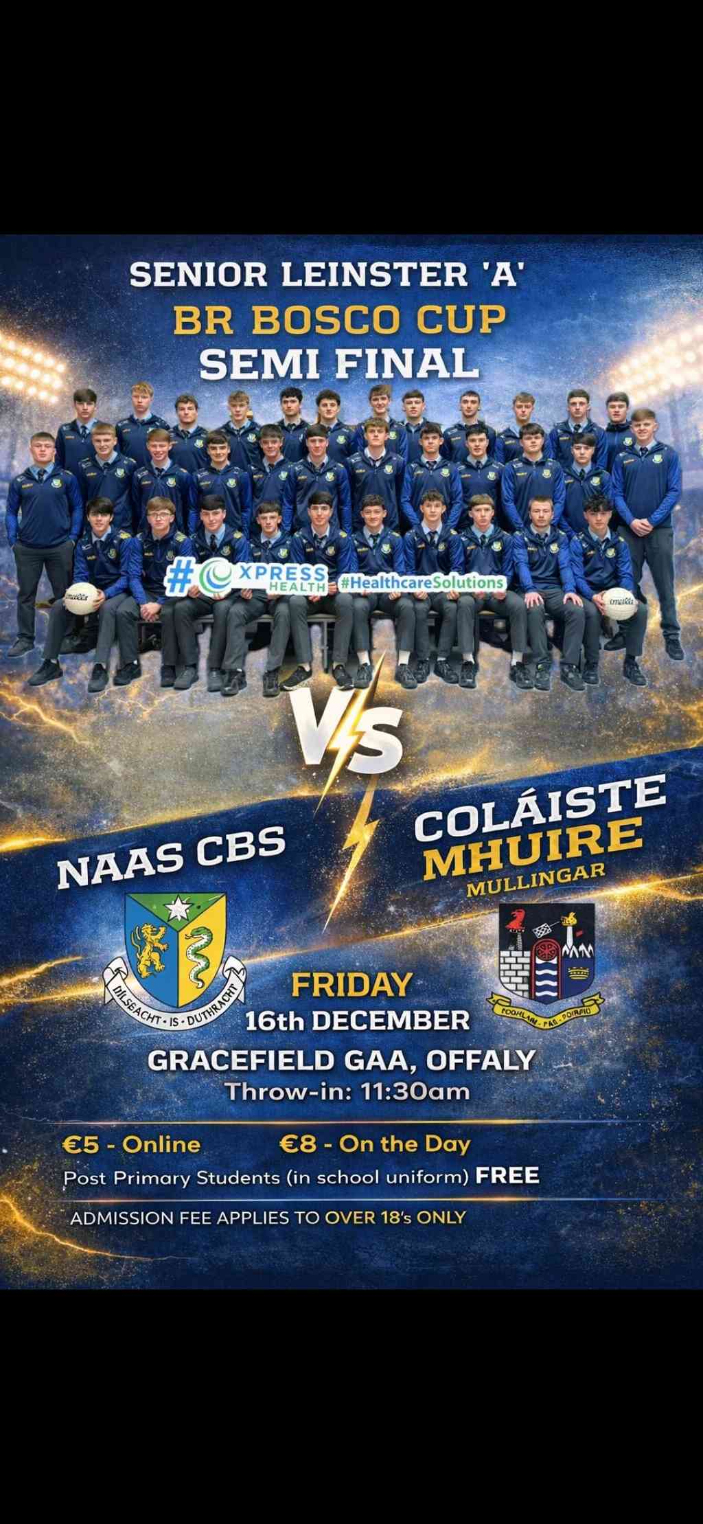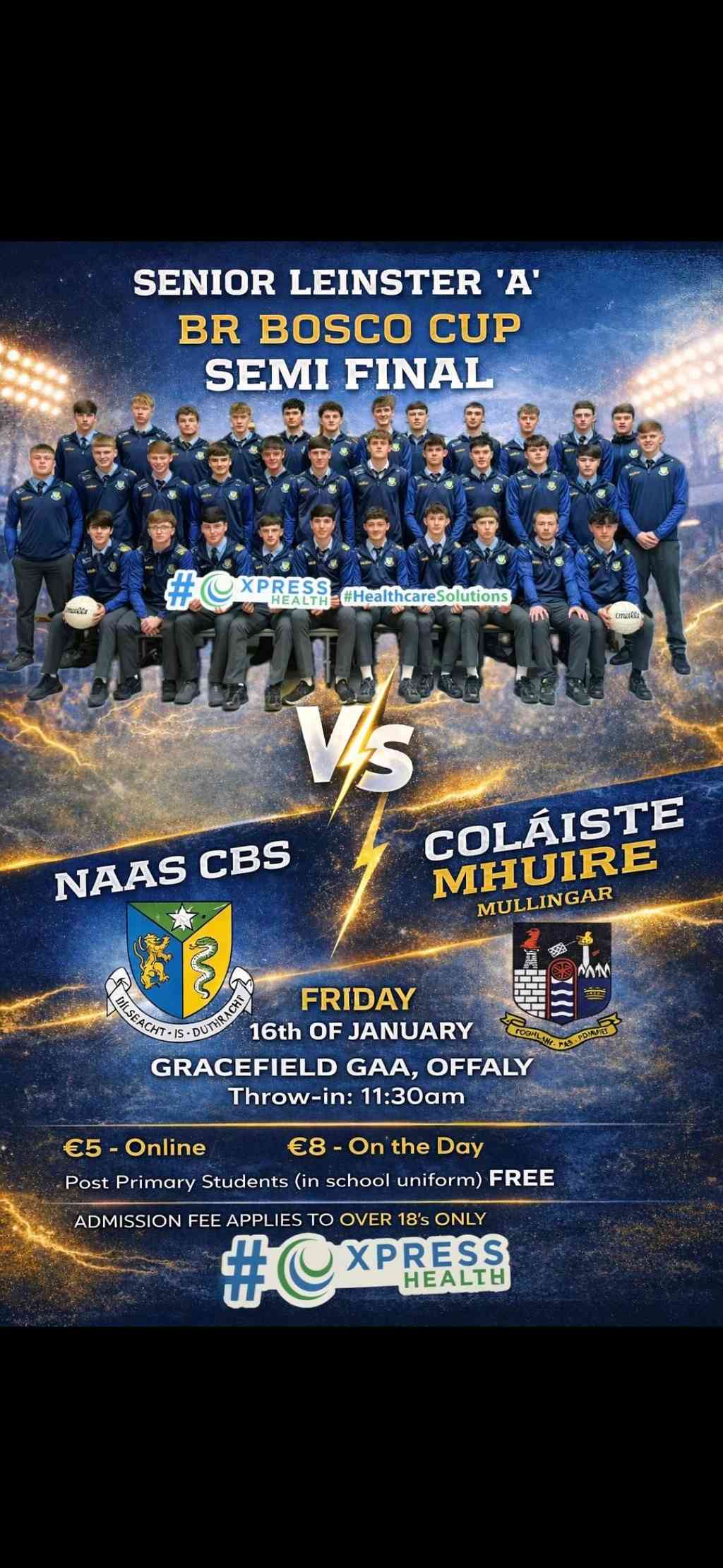 Leinster S.F. ‘A’ Semi Final Naas CBS v Coláiste Mhuire, Mullingar Venue – Gracefield Date – Fri, 16.01.2026 …